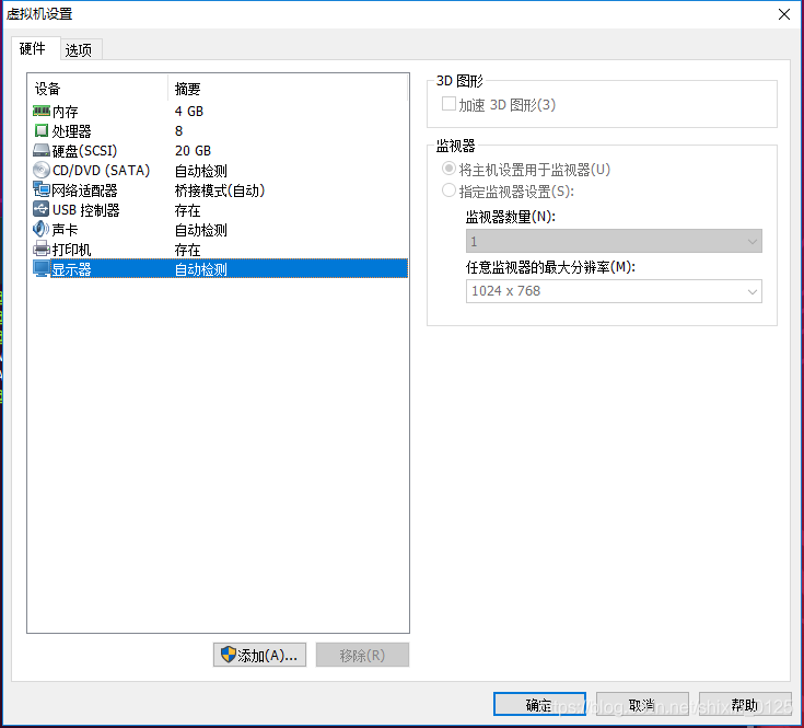安装完成vmware-tools后这里监视器选择第一个,否则窗口还是不能随着外面虚拟机软件的窗口缩放。