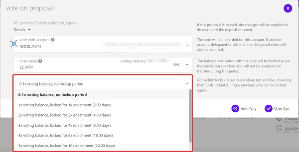 为了规避这样的问题,加权投票是个不错的方式,有些 DAO 组织让投票效用与持有时长(币龄)挂钩,持有时间越长,投票权越大,还有一些 DAO 组织,让投票效用与锁仓时长挂钩,例如Polkadot:用户可以选择不锁仓,但投票效用极小,选择较长的锁仓时长,可以提高投票效用。