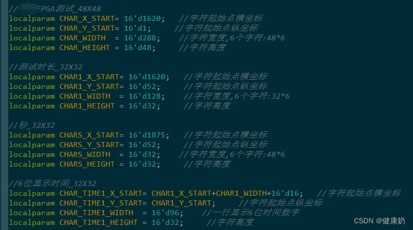 数组在系统上电复位期间回写入字符。具体看我的代码吧,这里说不清楚。 2、字符在图像中显示的位置如何确定? 这就需要结合你的点阵字符的大小了,比如你是32X32的还是16X16的或者是48X48的,代码中会宏定义每个字符块的显示起始坐标,显示长和宽等,如下: