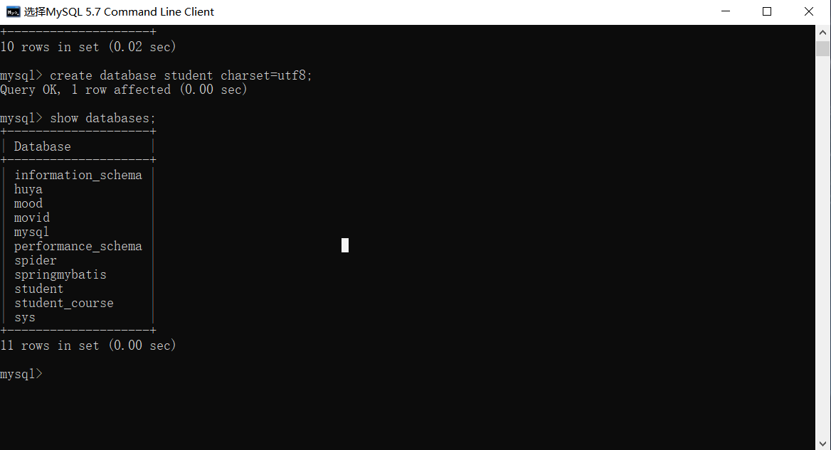 创建一个名为student的数据库 创建成功,会出现query ok等信息,就可以查询一下数据库。
