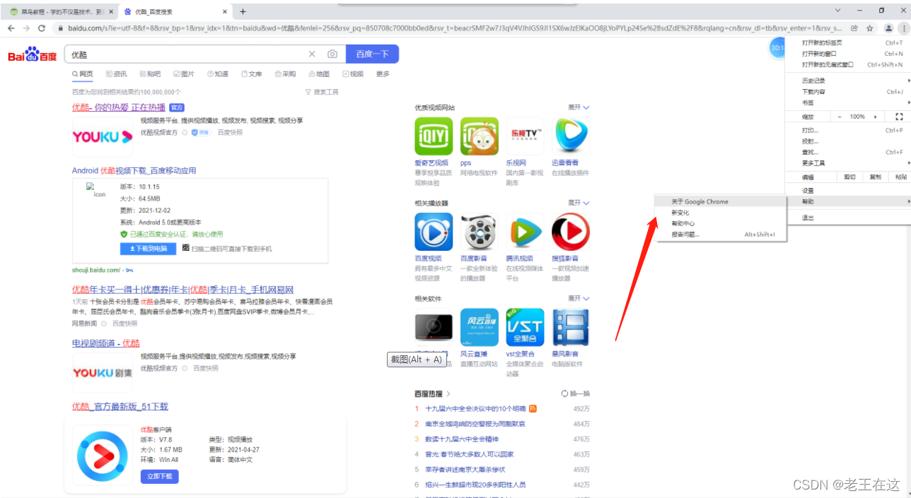 2.这里以 Chrome 浏览器为例:查看Chrome浏览器的版本