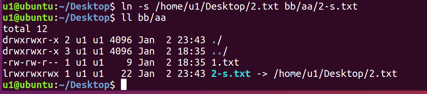 • 如果软链接和源文件不在同一个目录,源文件要使用绝对路径,不能使用相对路径