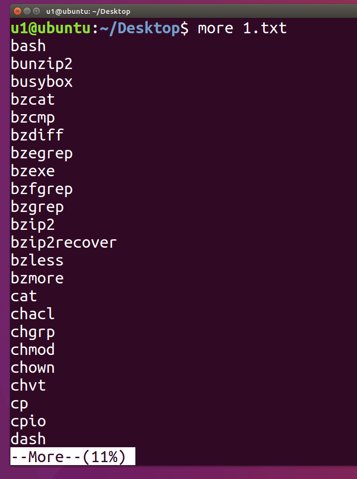 当查看的内容信息过长无法在一屏上显示时,可以使用more命令在终端分屏显示文件内容