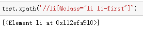 # 选取属性 class 值为 'li li-first' 的 li 元素 test.xpath('//li[@class="li li-first"]')