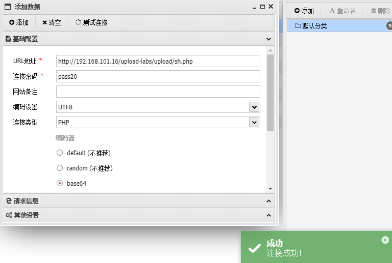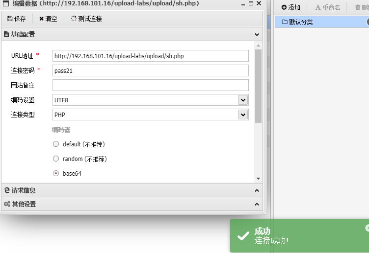 图片上传成功,蚁剑连接成功