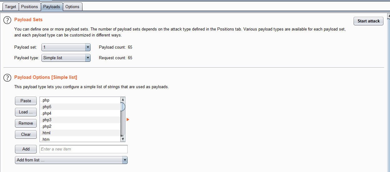 按下图设置payload。我的payload是通过文件导入的,文件可以从网上找,再根据各种绕过方式增加payload。