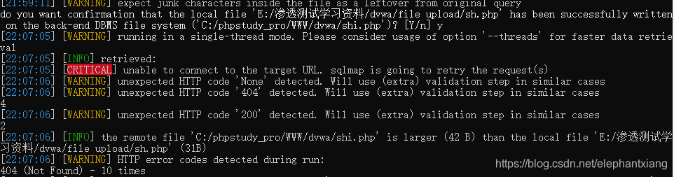返回的结果是没成功,但是我看服务器上虽然后门没传上去,上传文件用的那个php文件倒是传上去了,问题是一来sqlmap报了错,我们不登陆服务器就不知道这文件传上去了 ,二来这文件名也是有一定随机性的,sqlmap报错就不告诉我们这个文件的名字了。