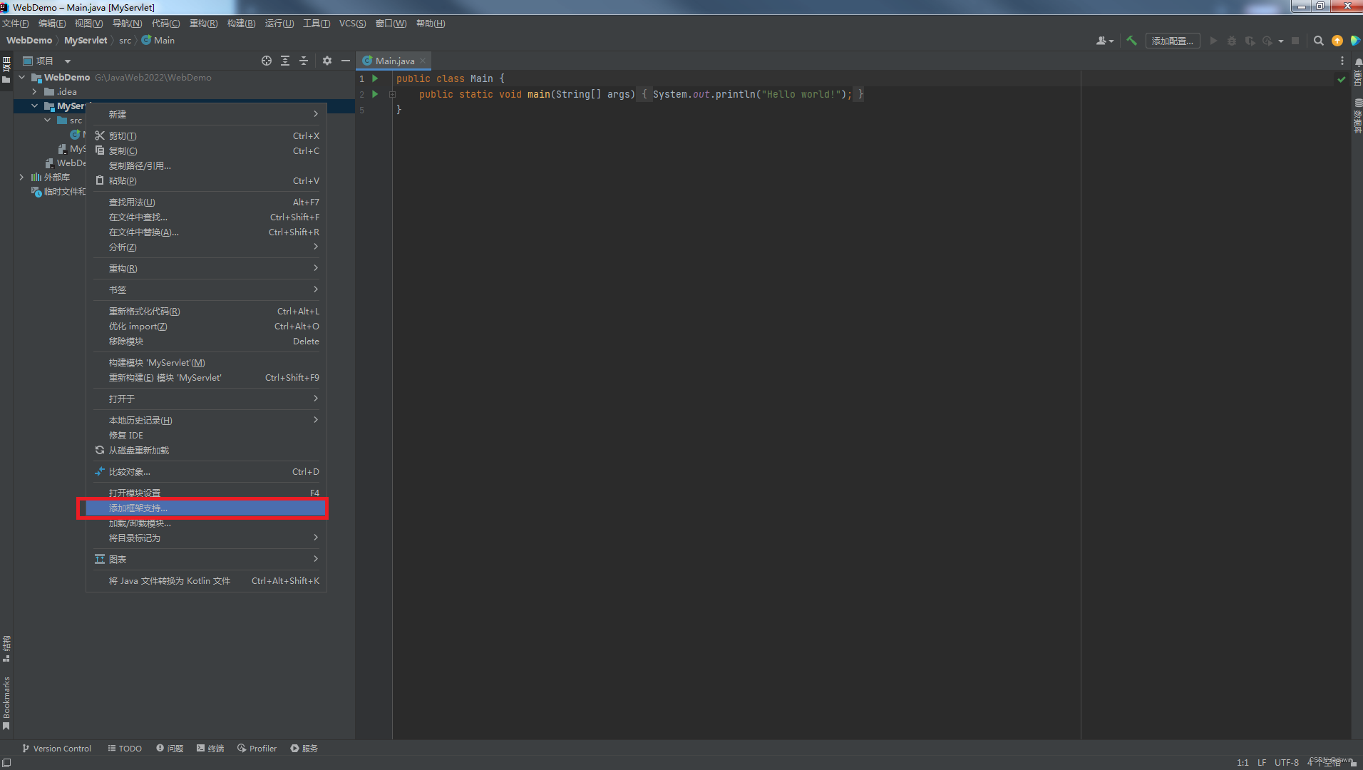 ⑴ 添加实现Servlet的方法,主要是service方法。