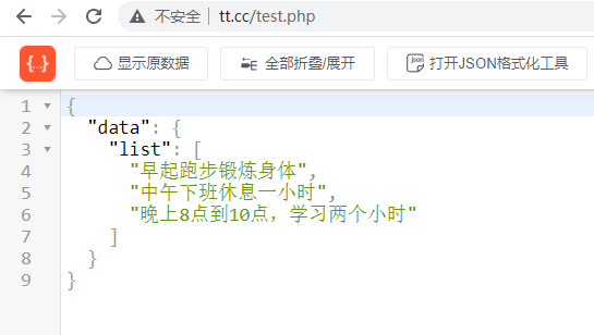 { "data": { "list": [ '早起跑步锻炼身体', '中午下班休息一小时', '晚上8点到10点,学习两个小时' ] } }