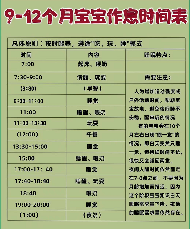 阅读目录 0-1个月宝宝作息时间表1-2个月宝宝作息时间表2-4个月宝宝作息时间表4-6个月宝宝作息时间表6-9个月宝宝作息时间表9-12个月宝宝作息时间表0-12个月宝宝护理知识 0-1个月宝宝作息时间表 1-2个月宝宝作息时间表 2-4个月宝宝作息时间表 4-6个月宝宝作息时间表 6-9个月宝宝作息时间表 9-12个月宝宝作息时间表 0-12个月宝宝护理知识