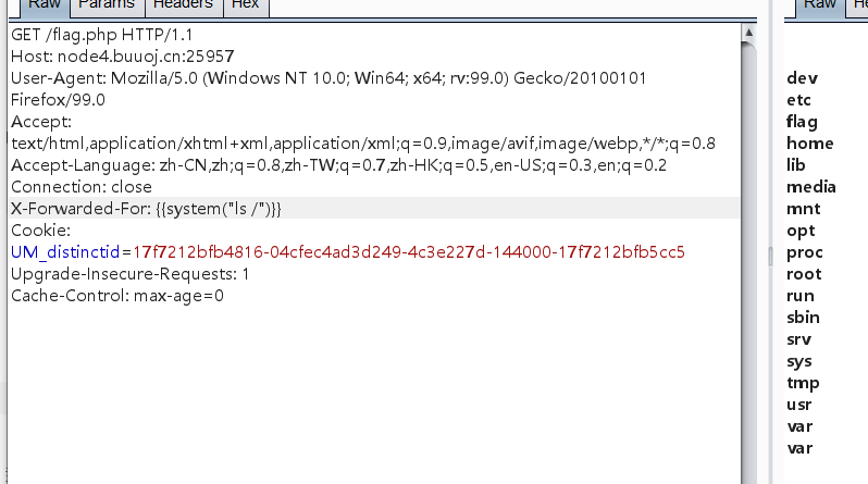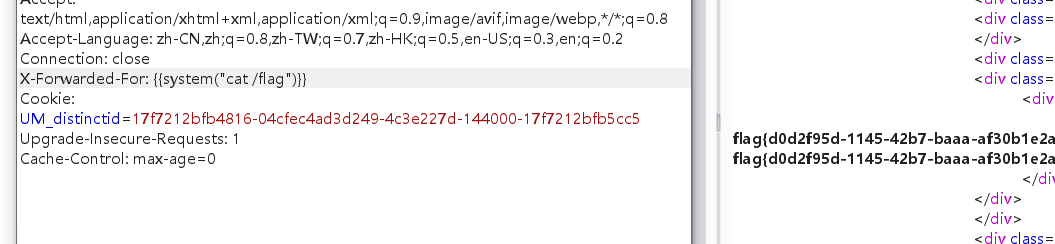 这题是有关ip的 ,在X-Forward-For 后面可以SSTI ,测试