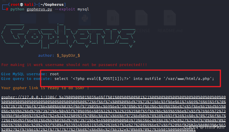 完全是跟着wp来尝试,就是通过Gopherus把一句话写进网站根目录,语句要正确
