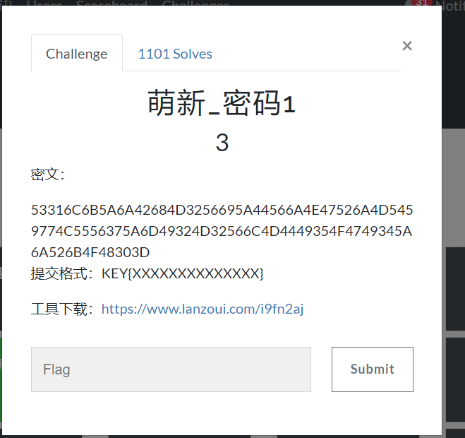密码1看到这段密文,第一反应就是十六进制 然后base64,跟之前写的一道很像