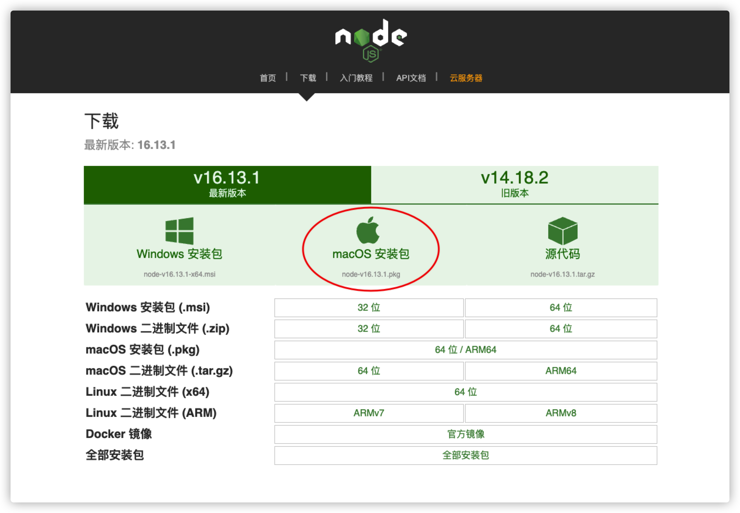 一、下载安装包点击 Node.js 中文官网, 下载 macOS 安装包。