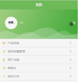 普通用户;首页、产品信息、公告资讯、购物车、我的等,在我的页面可以对个人中心、产品信息、我的收藏管理、用户充值、购物车、我的订单等