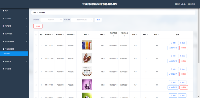 供货商;首页、个人中心、产品信息管理、订单管理等