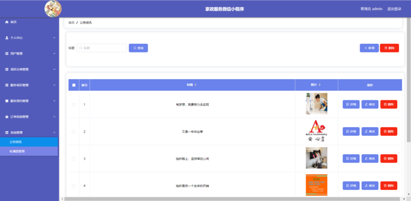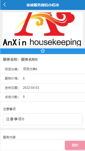 普通用户:首页、公告资讯、我的等,在我的页面可以对个人中心、服务项目、服务预约、订单信息、我的收藏管理功能