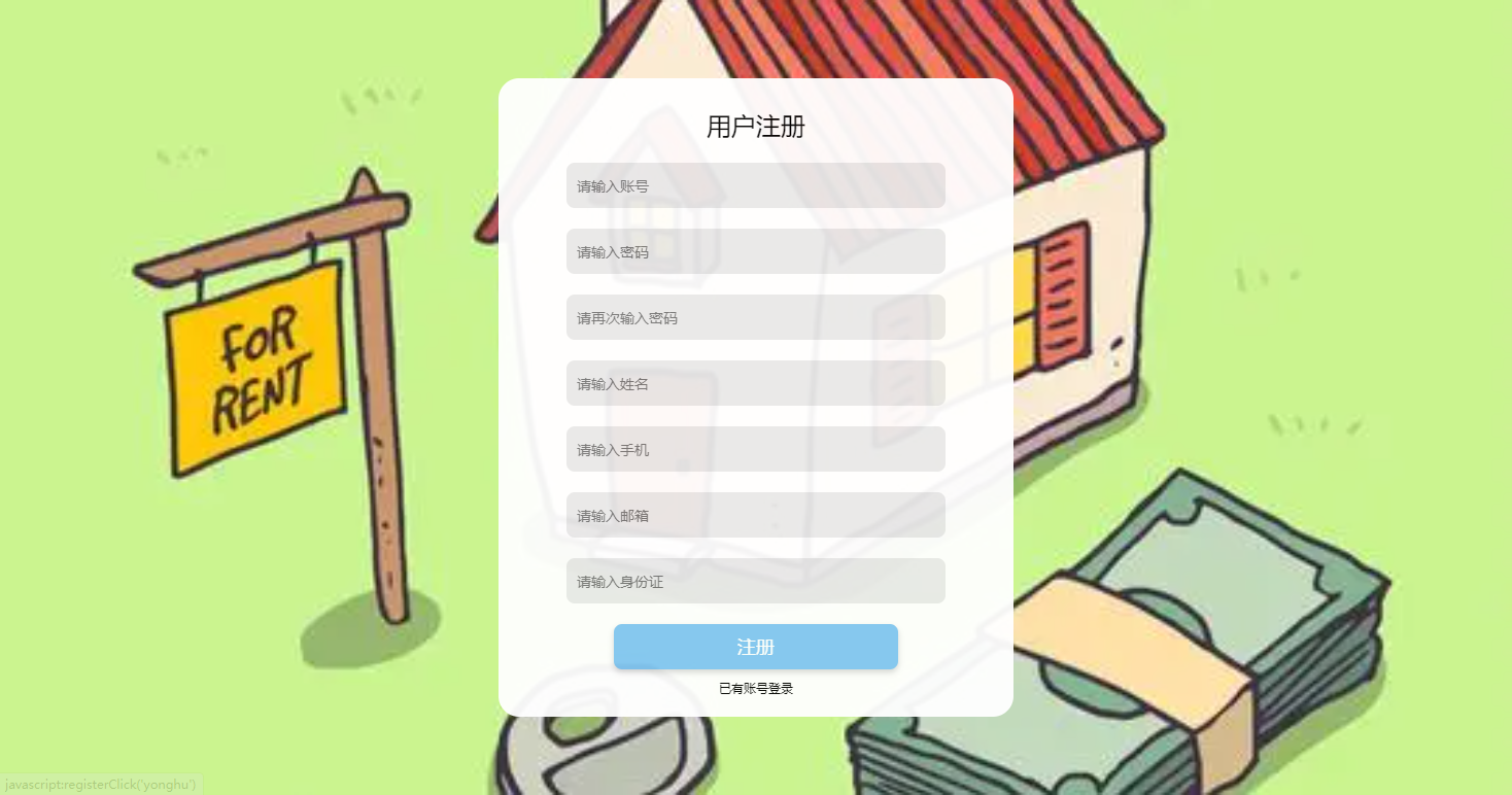 前台用户:首页可以查看房屋信息、租房资讯、申诉与回复、个人中心、后台管理、在线咨询等