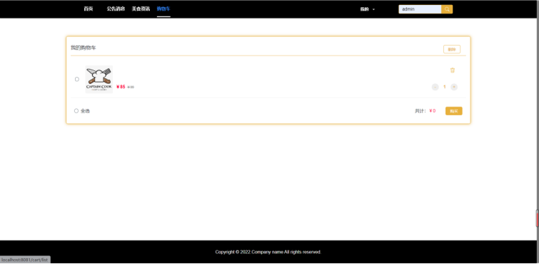 前台用户:用户注册登录后可进行首页、公告消息、美食资讯、购物车、配送信息等