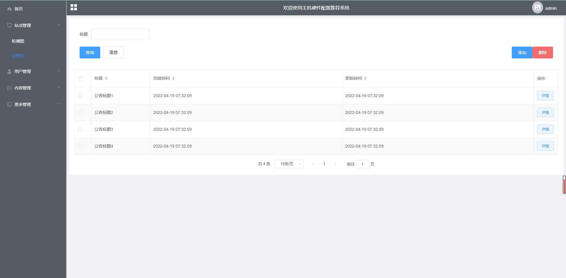 前台用户:首页、公告信息、装机资讯、配件信息、收藏配件信息,密码修改,评论配件和资讯