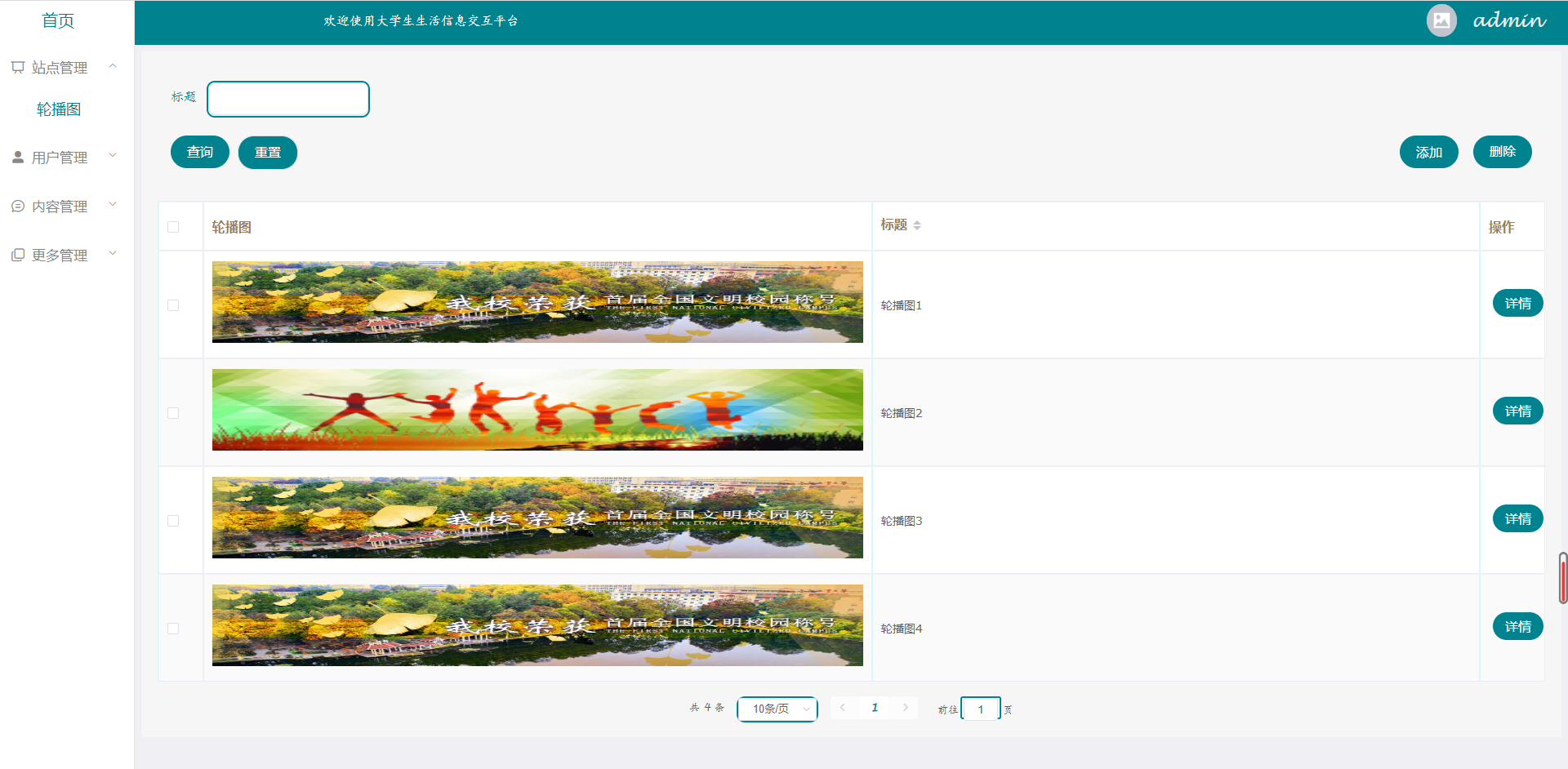 管理员:站点管理、用户管理、交互信息、论坛分类、平台资讯、资讯分类、二手买卖、失物信息、通知公告等