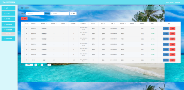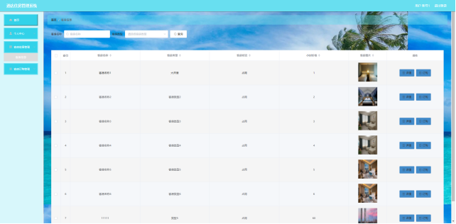 用户:首页、个人中心、客房信息管理、客房订购管理等