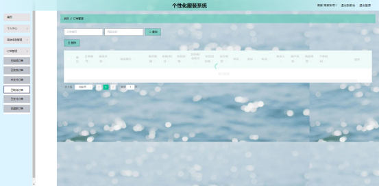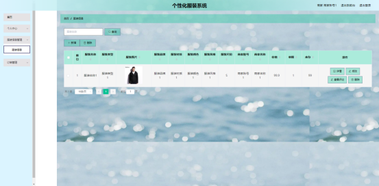 商家登录:首页,个人中心,服装信息管理,订单管理等