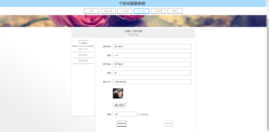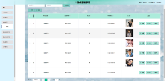 管理员:首页,个人中心,用户管理,商家管理,服装类型管理,服装信息管理,系统管理,订单管理等