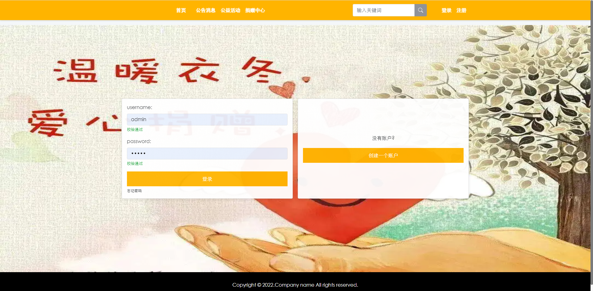 登录、注册、公告信息、公益活动、捐赠中心,我的功能模块的查看与操作