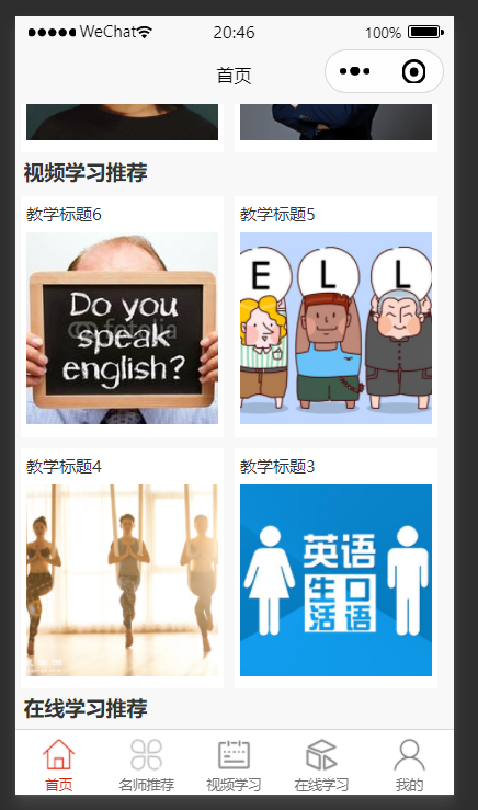 用户端;首页、名师推荐、视频学习、在线学习、论坛中心、我的等主要功能模块的操作和管理。
