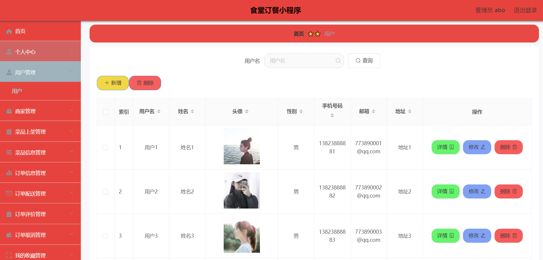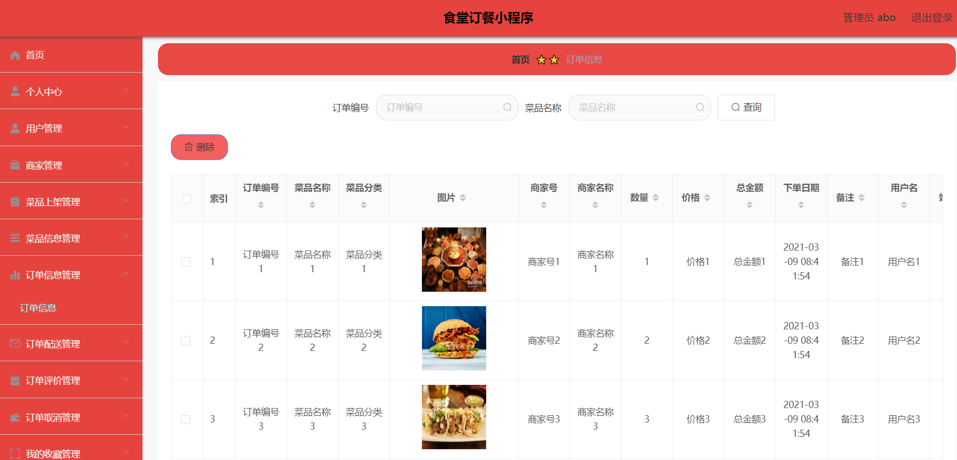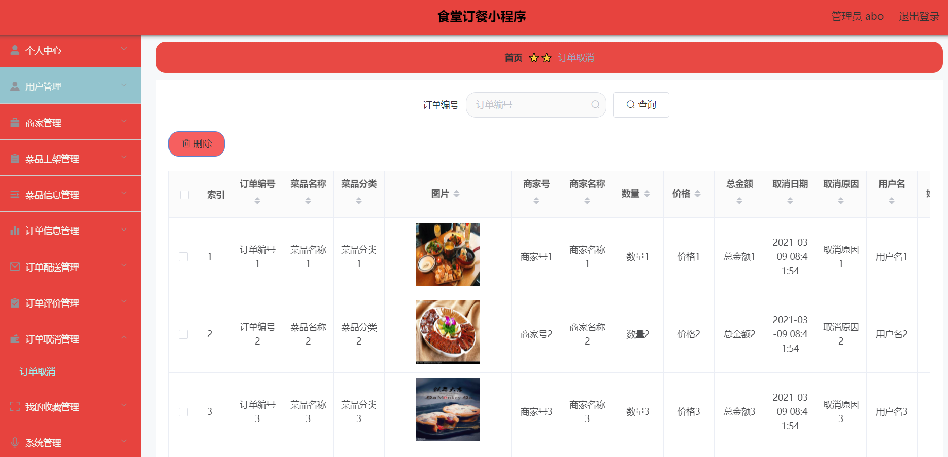 随着我国经济迅速发展,人们对手机的需求越来越大,各种手机软件也都在被广泛应用,但是对于手机进行数据信息管理,对于手机的各种软件也是备受用户的喜爱,食堂订餐小程序被用户普遍使用,为方便用户能够可以随时进行食堂订餐小程序的数据信息管理,特开发了基于食堂订餐小程序的管理系统。
