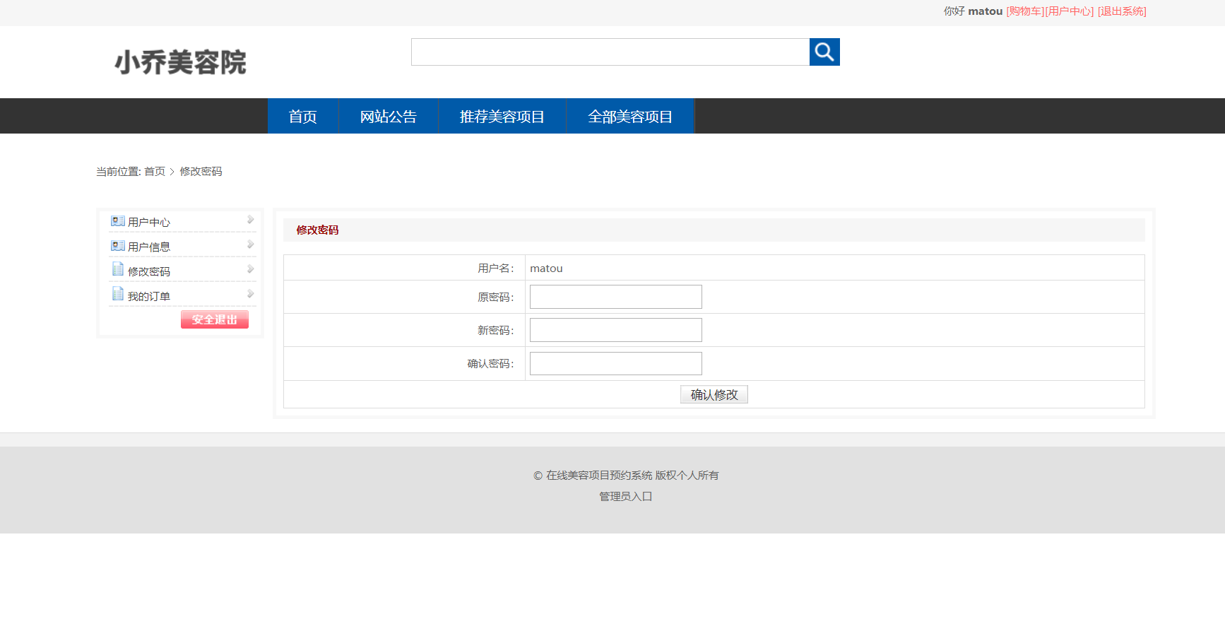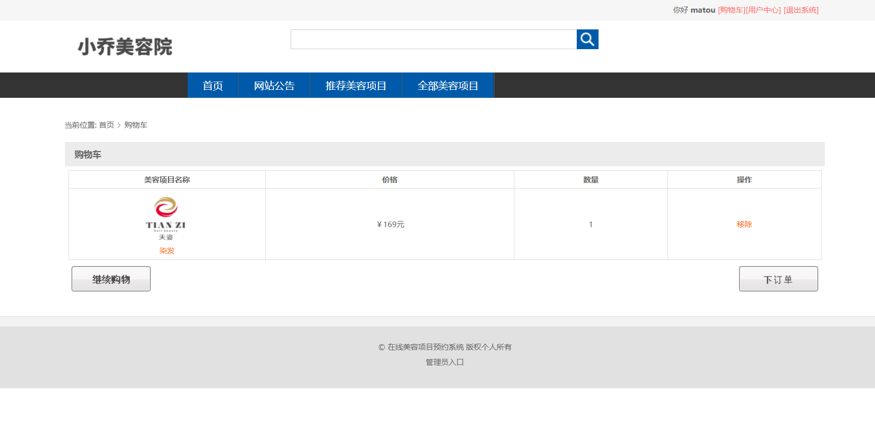 美容院信息列表,美容项目信息查询,订单信息查询,美容项目评价信息列表等功能。