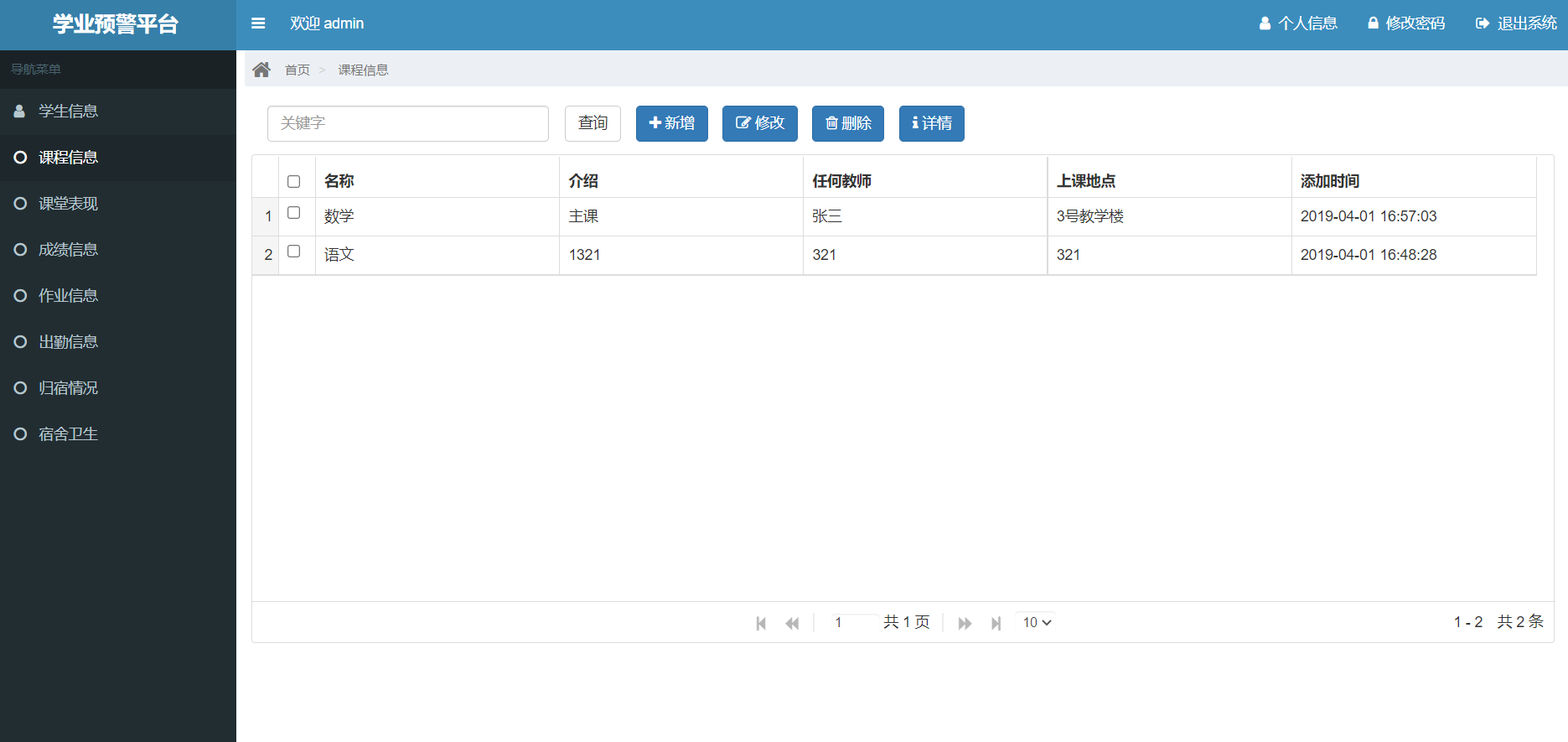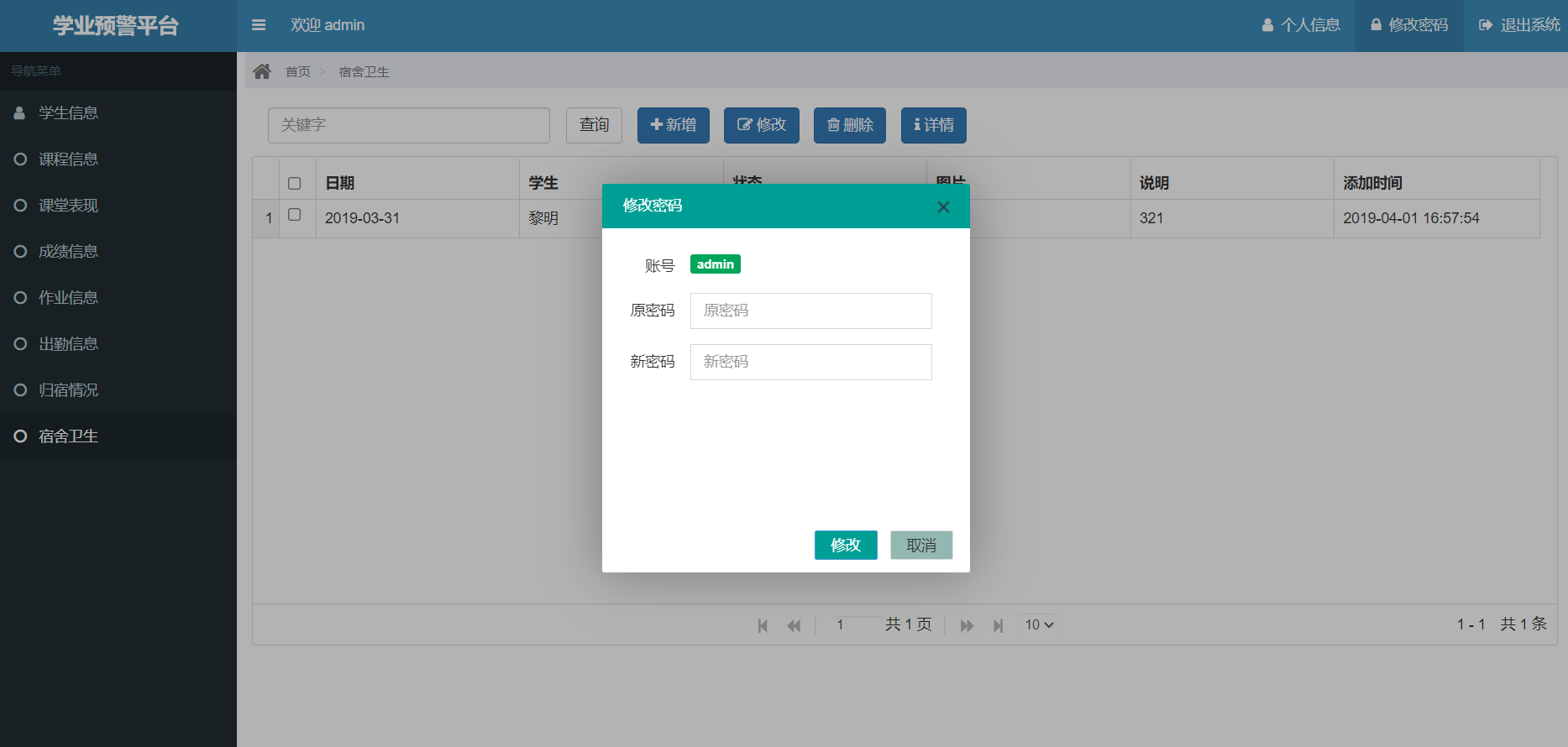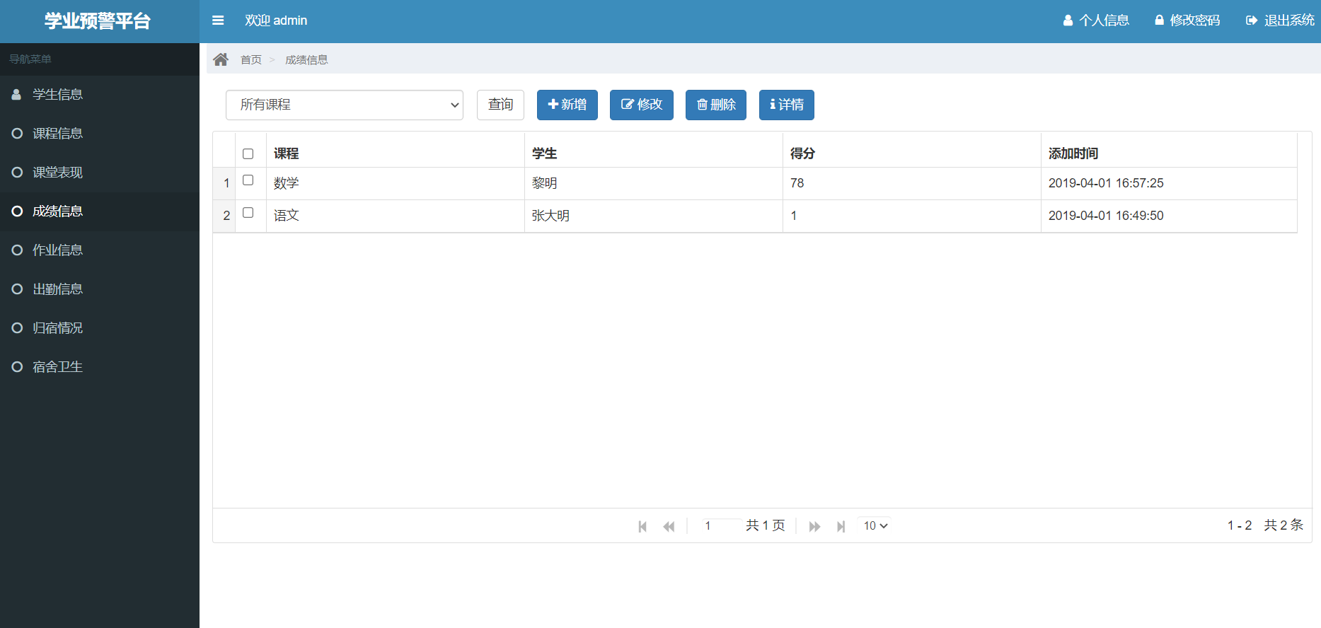 管理员角色包含以下功能:管理员登录,学生管理,课程管理,课堂表现管理,成绩信息管理,作业管理,出勤信息管理,归宿情况管理,宿舍卫生管理等功能。