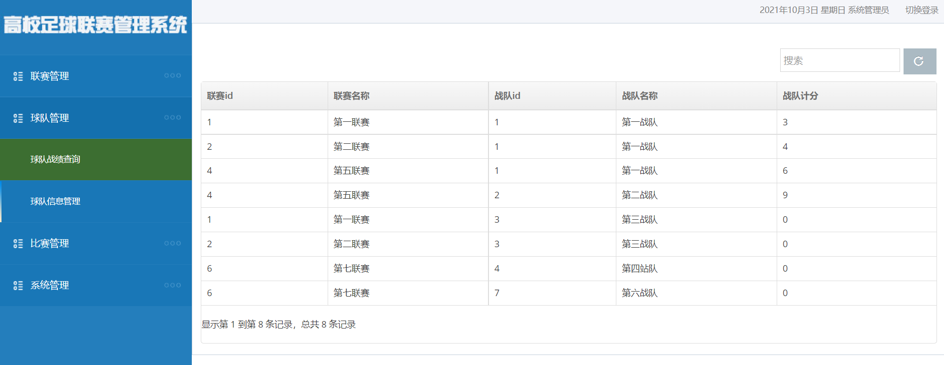 管理员登录,联赛积分榜查询,联赛管理,联赛计分管理,球队战绩查询,球队信息管理,比赛结果管理, 比赛结果查询,基础数据管理,用户管理,角色管理,模块管理等功能。