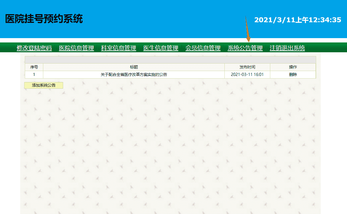 医院挂号系统主要用于实现医院的挂号,前台基本功能包括:用户注册、用户登录、医院查询、挂号、取消挂号、修改个人信息、退出等。 后台基本功能包括:系统管理员登录、医院管理、科室管理、公告管理、退出系统等。