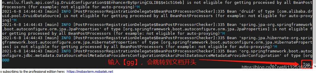 在编辑的文件中按键盘的【G】键,光标会移动到文档开头