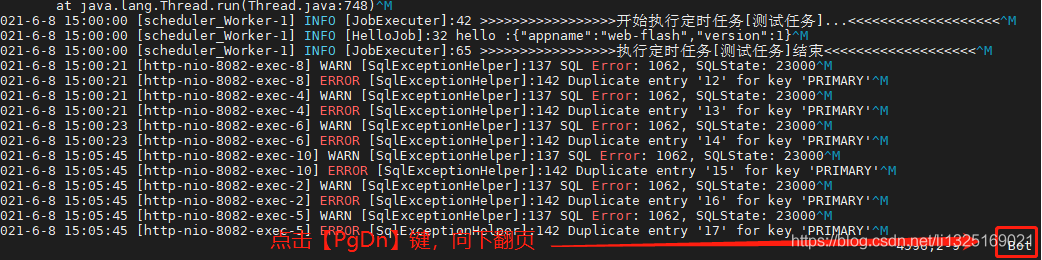 在编辑的文件中按键盘的【PgDn】键,向下翻页查看文档