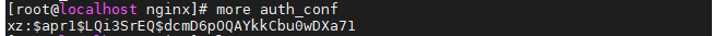 [root@localhost nginx]# htpasswd -c ./auth_conf xz -