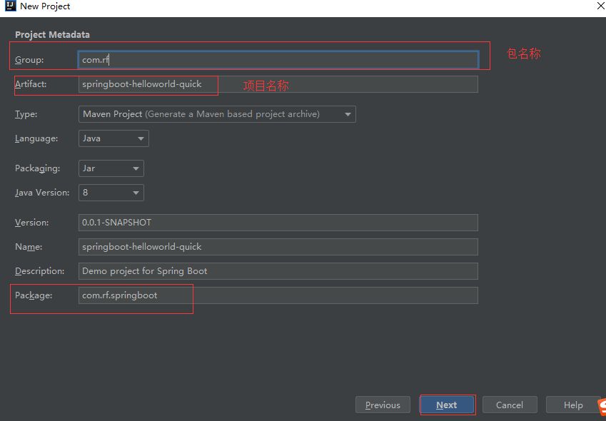 3、填写包名称----->项目名称--------->Next