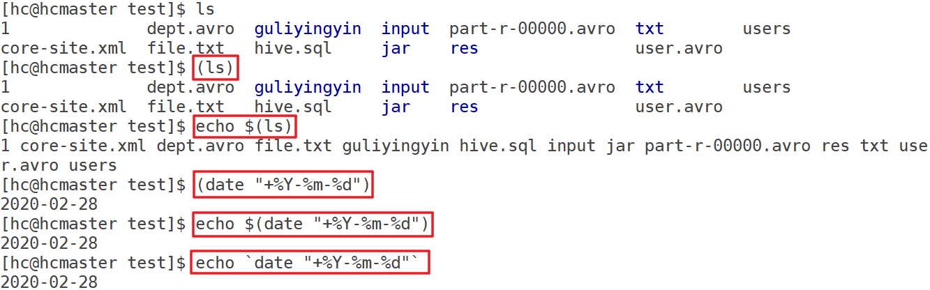 在bash中,( )与 ``(反引号)都是用来作命令替换的。 命令替换与变量替换差不多,都是用来重组命令行的,先完成引号里的命令行,然后将其结果替换出来,再重组成新的命令行。
