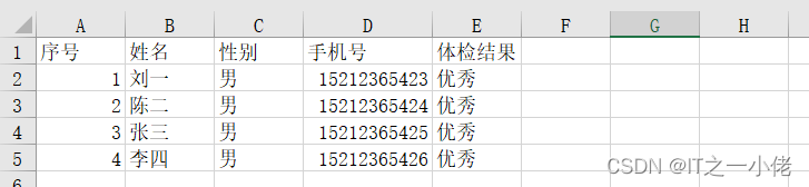 value = ['序号', '姓名', '性别', '手机号', '体检结果']