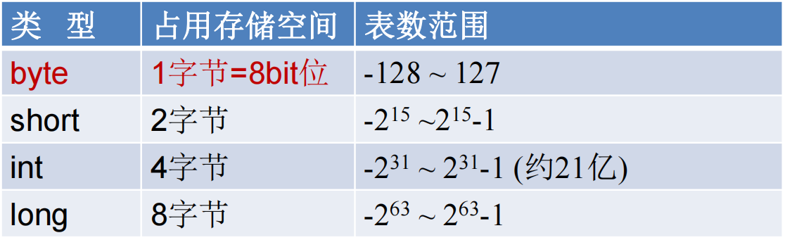 - Java各整数类型有固定的表数范围和字段长度,不受具体OS的影响,以保证java程序的可移植性。