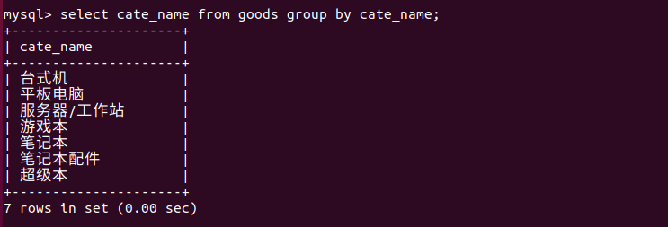 select cate_name from goods group by cate_name;
