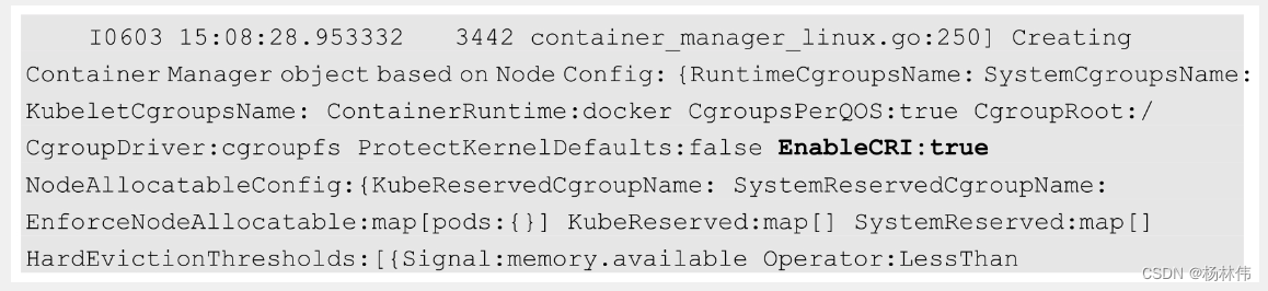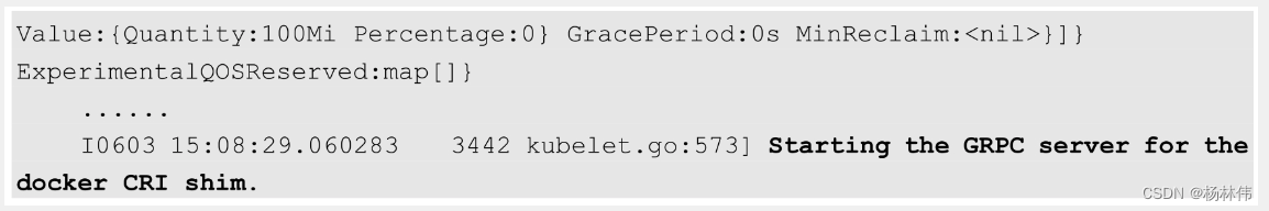 查看 kubelet 的日志,可以看到启用CRI和创建 gRPC Server 的日志:
