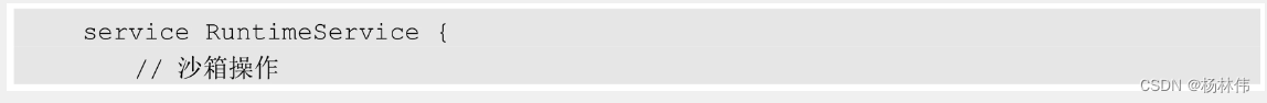 RuntimeService服务包括对 Sandboxi 和 Container 操作的方法,下面的伪代码展示了主要的 RPC方法: