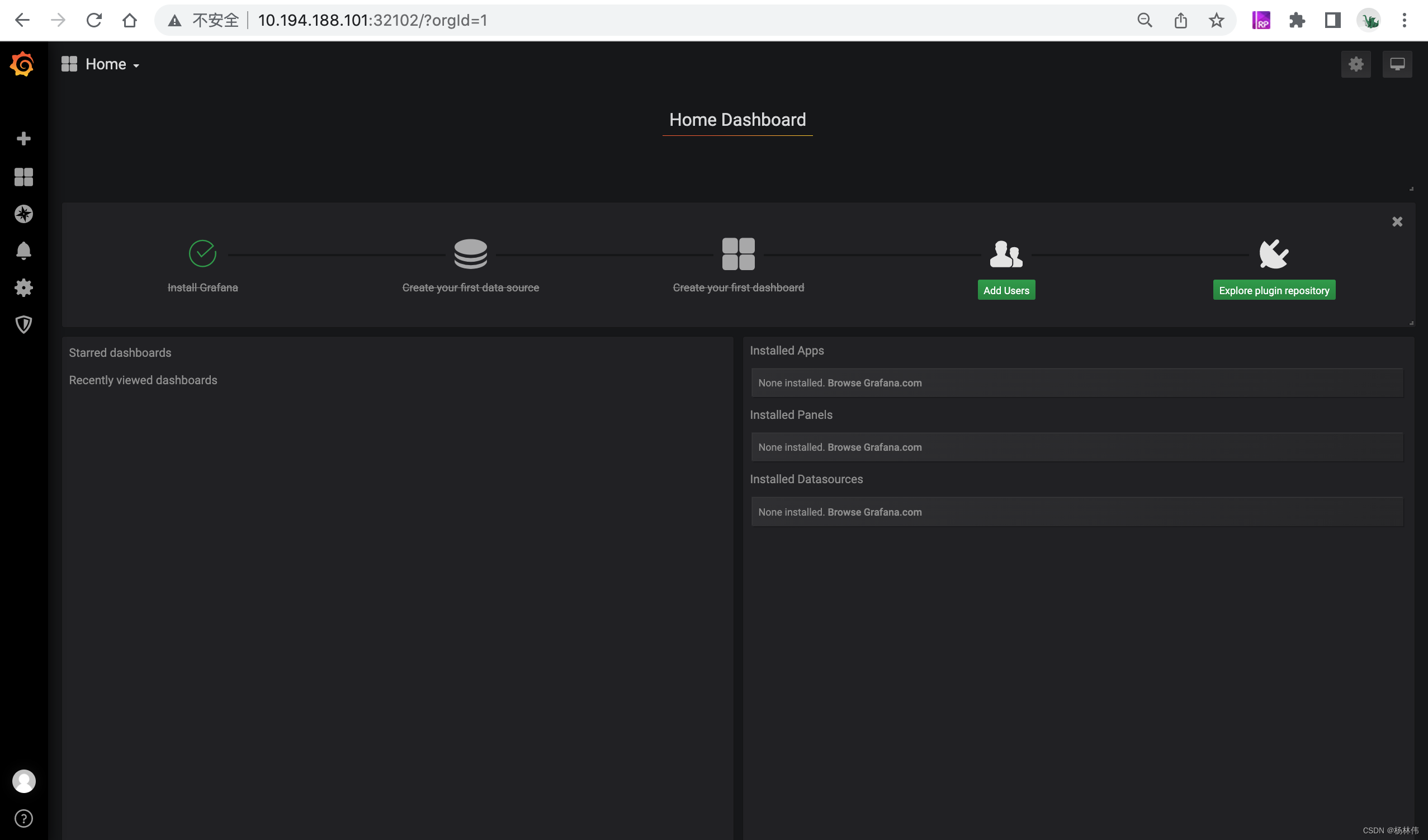打开地址:http://10.194.188.101:32102,默认账号密码为admin: 可以看到所有组件都安装成功了!