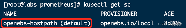 使用命令查询当前StorageClass的名称(需要安装openebs):