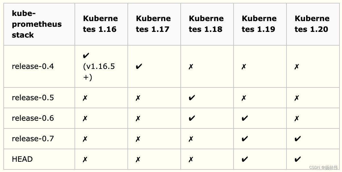 注意kube-promethues与kubernetes的版本对应关系如下: